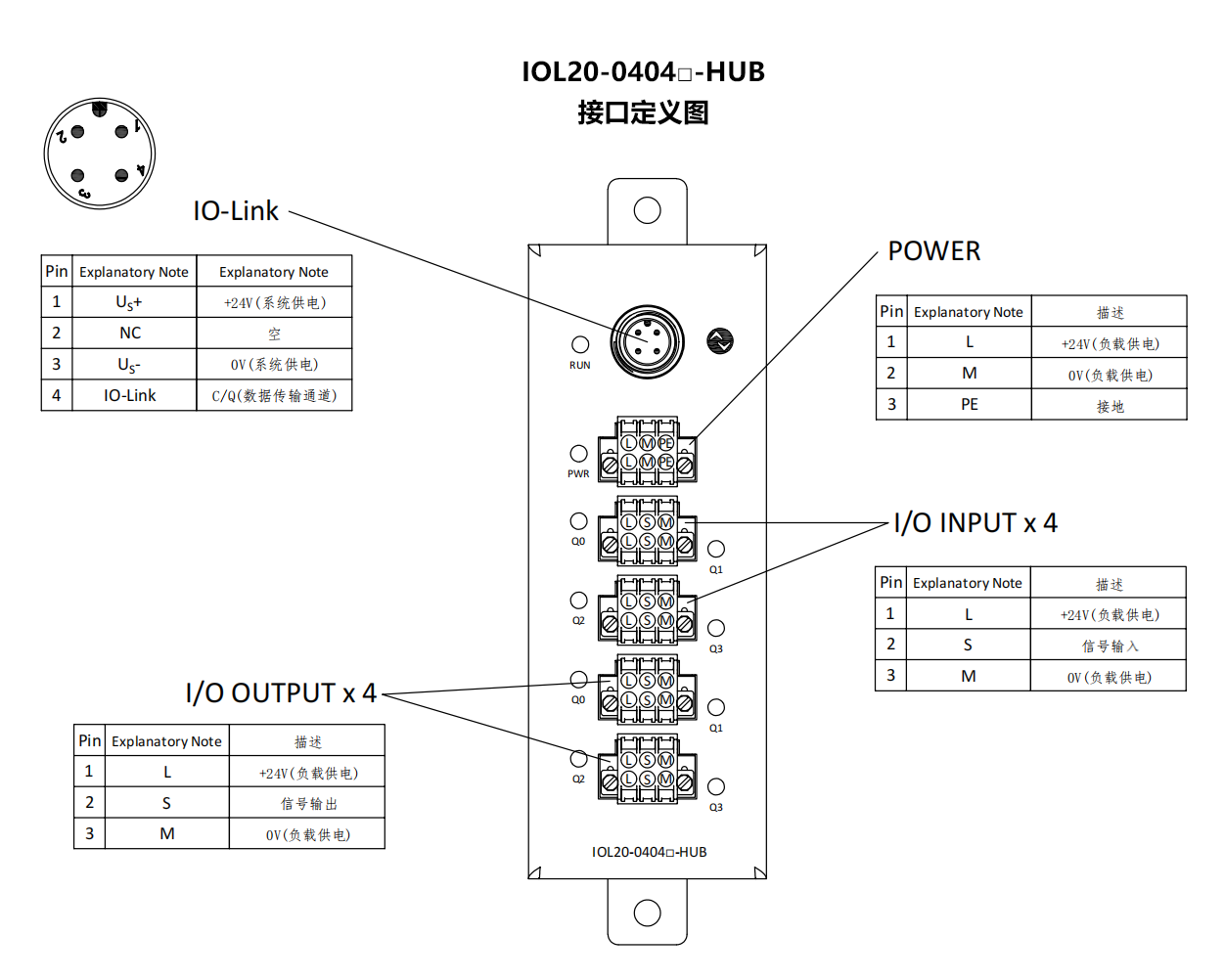 IO-Link從站,Class A,4DI_PNP,4DO_PNP,晶體管,0.5A,24VDC,IP20防護(hù)等級(jí)